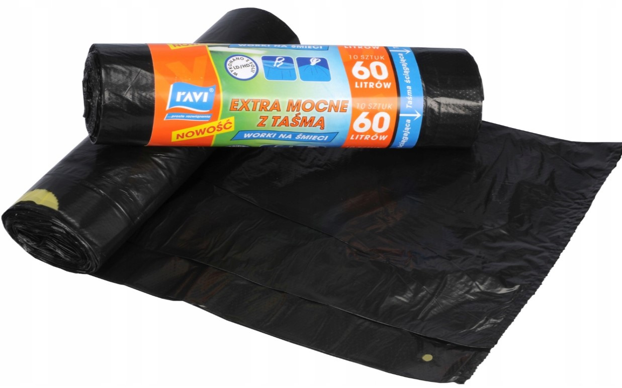 Worki na śmieci extra mocne RAVI 60L 10szt. czarne