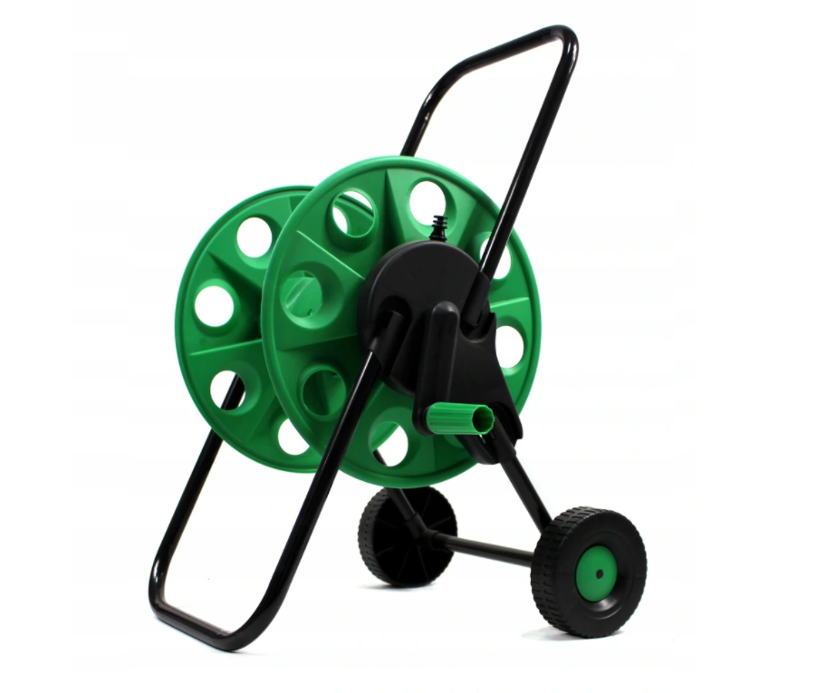 - Wózek na wąż ogrodowy zapewnia wygodne przewożenie i przechowywanie węża. Zwijacz został wyposażony w dwa praktyczne, wyprofilowane kółka, ułatwiające bezproblemowe prowadzenie po alejkach, nie niszcząc trawy.