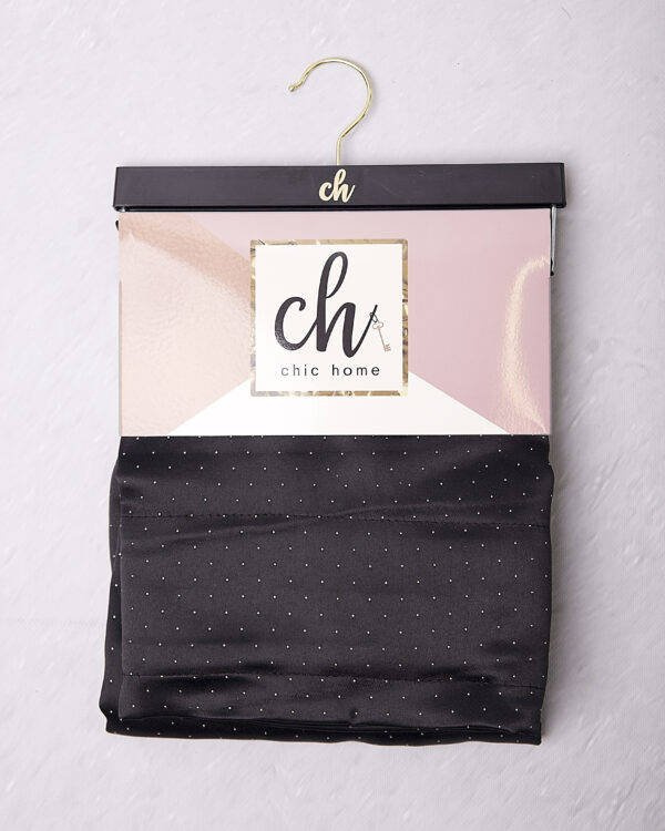 - Zasłona zaciemniająca ze ślicznej, mięsistej tkaniny w kolorze czarnym z nadrukiem w drobne srebrne kropeczki.