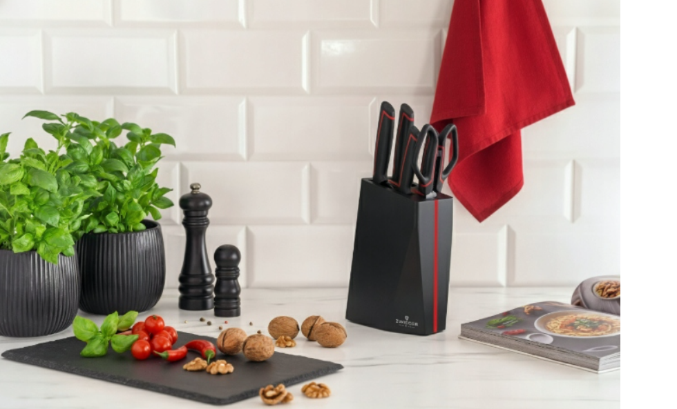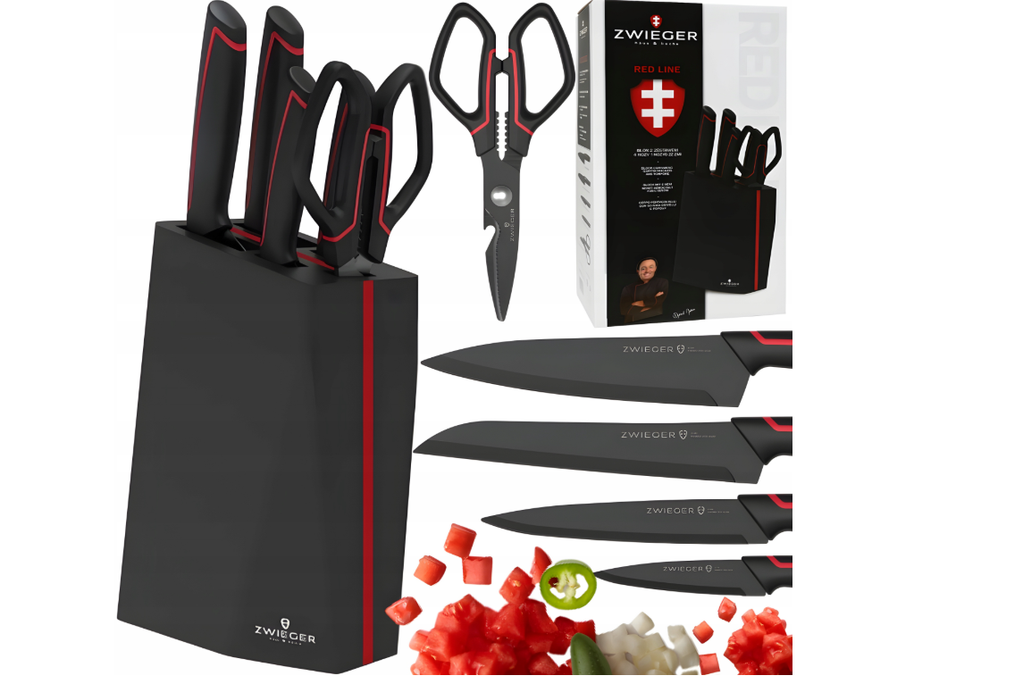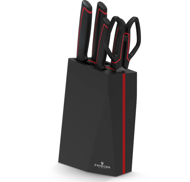 Zestaw 4 noży i nożyczki w bloku ZWIEGER RED LINE 6 elementów
