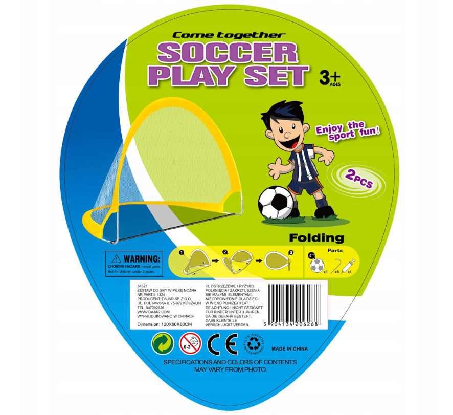 Zestaw do gry w piłkę nożną, dzięki temu, ze jest składany, nie zajmuje wiele miejsca, dlatego łatwo można go przewozić lub przechowywać. Pozwala zaaranżować własne boisko do gry w piłkę nożną według potrzeb, na przykład na trawie, w ogrodzie lub na piasku, na plaży.