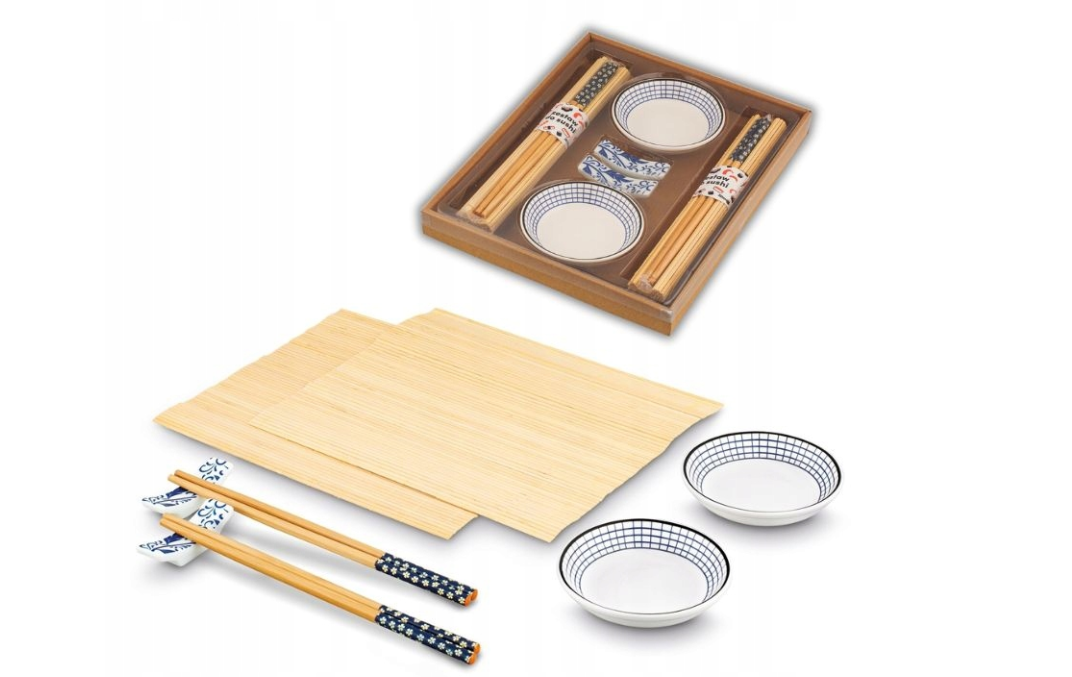 - Pozostałe informacje: podstawki i miseczki porcelanowe; pałeczki i maty bambusowe