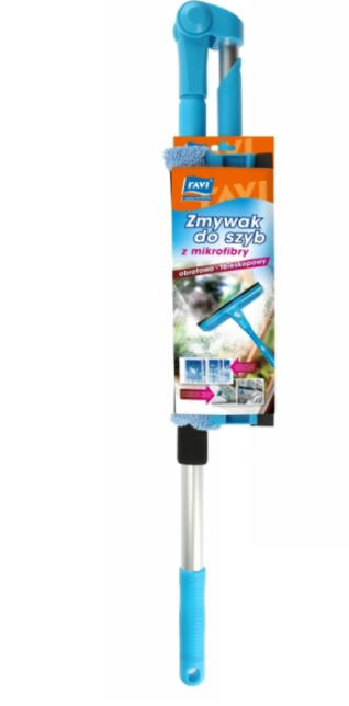 - Zmywak dwustronny z drążkiem teleskopowym wyposażony w wałek z miękkiej mikrofibry.